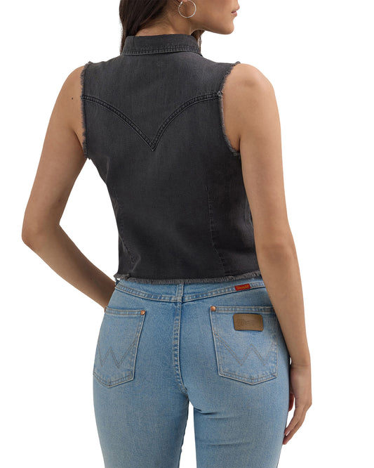 Women's Frayed Denim Crop Western Snap Tank Top