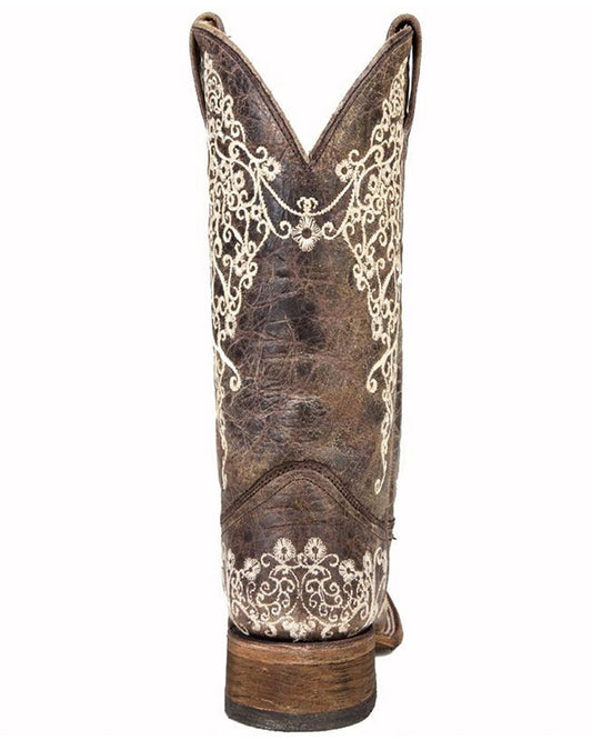 Women's Distressed Floral Embroidery Glow in the Dark Western Boots