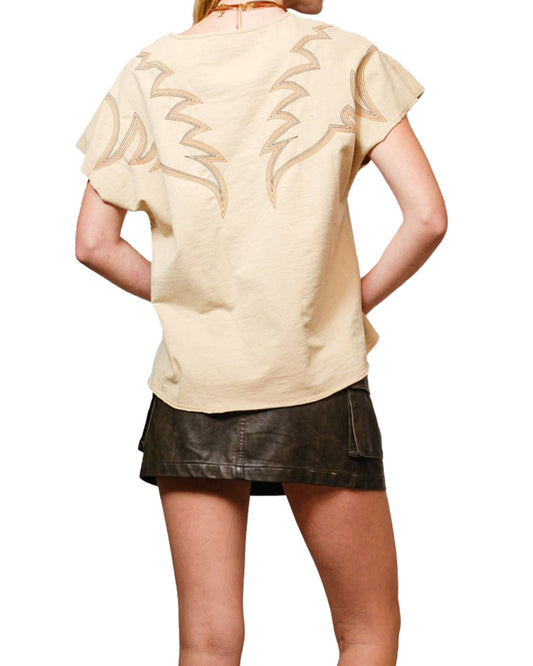 Women's Dolmen Boots Stitch V-Neck French Terry T-Shirt