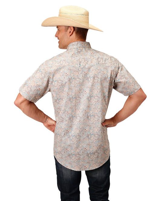 Men's Short Sleeve Dot Paisley Print Western Shirt