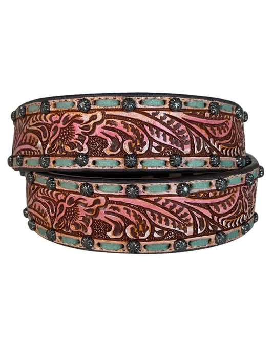 Women's Genuine Leather Belt With Hand Tooled Flowers