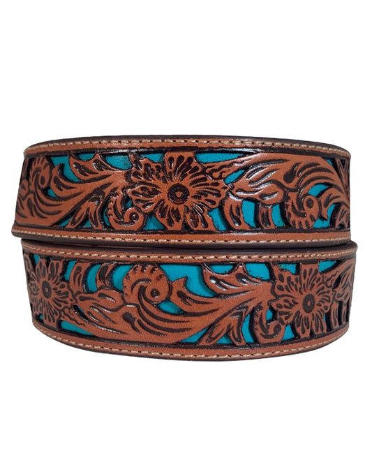 Men's Genuine Leather Belt With Floral Hand Tooled Cutout