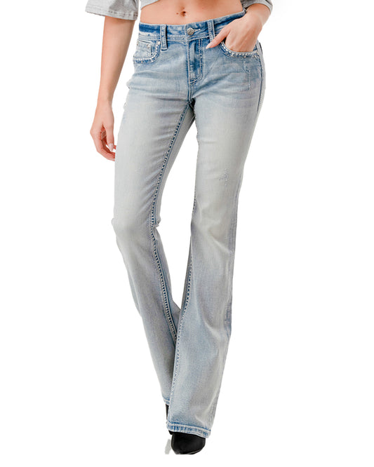 Women's Light Wash Cross Embroidery Boot Cut Jeans