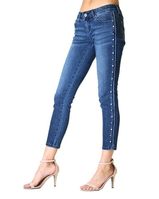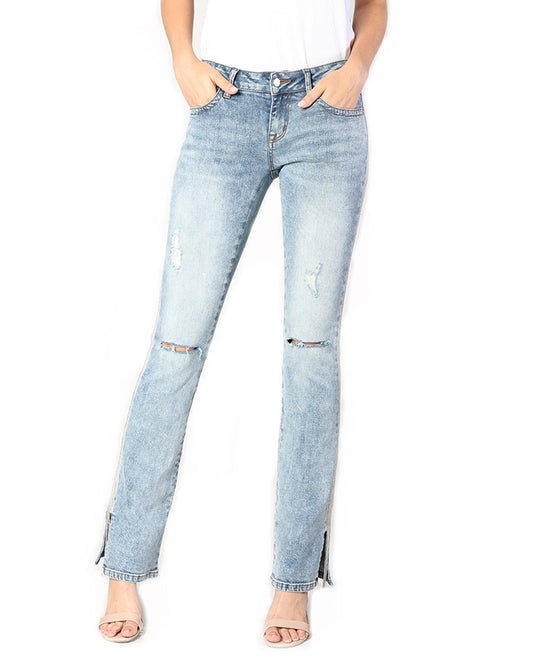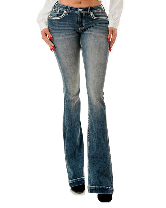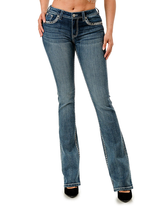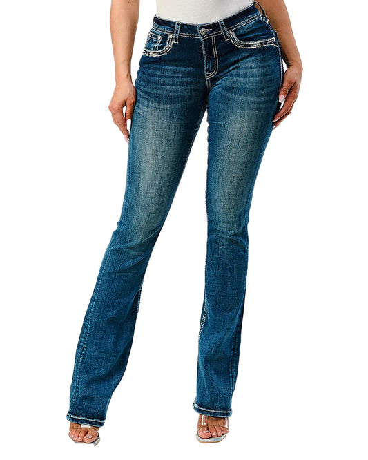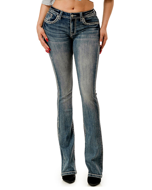 Women's Feather Faux Flap Embellishment Mid Rise Bootcut Jeans