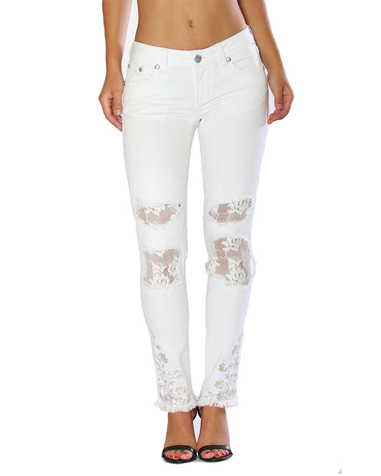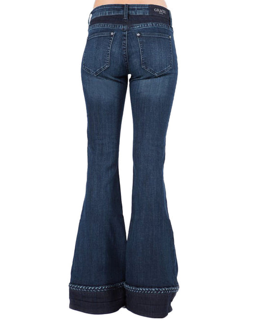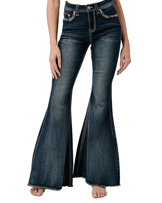 Women's Floral Embroidered Horseshoe Boot Cut Jeans