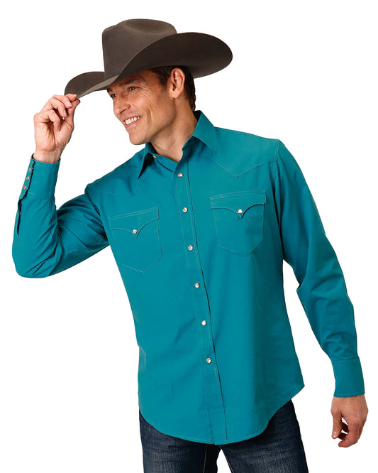 Men's Long Sleeve Solid Western Snap Shirt