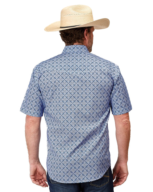 Men's Blue Skies Tie Print Short Sleeve Western Shirt