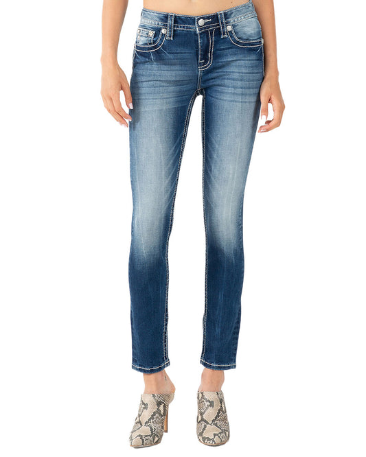 Women's Criss Cross Mid-Rise Skinny Jeans