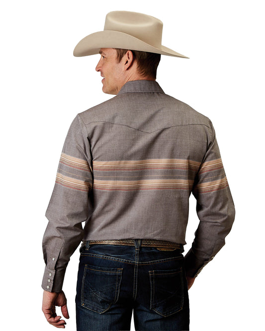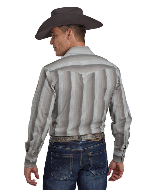 Mens Long Sleeve Snap Border Stripe Western Shirt - 01-001-0043-0367 Gy
