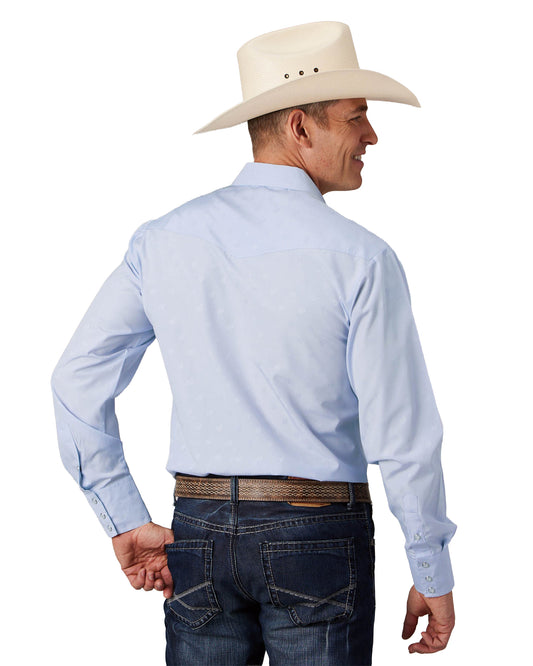 Mens Light Blue Tone On Tone Horseshoes Long Sleeve Snap Western Shirt - 01-001-0145-0414 Bu