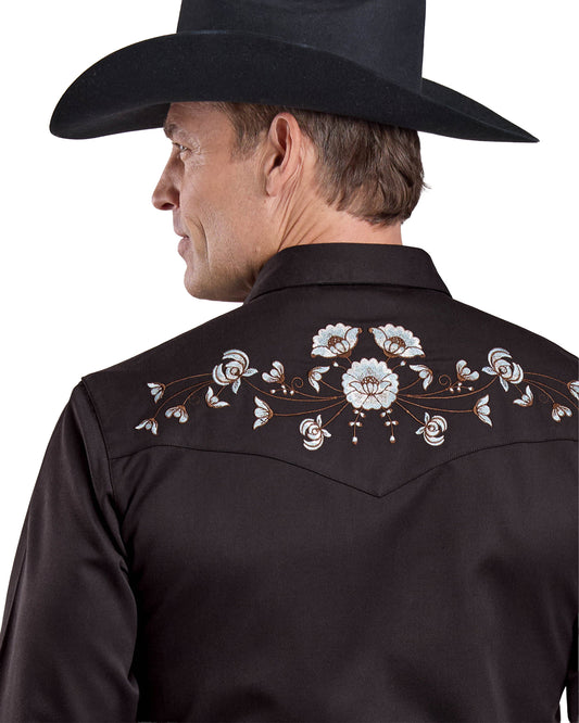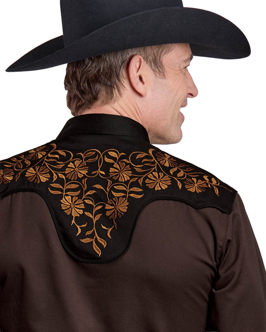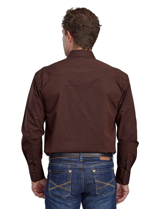Mens Long Sleeve Snap Chocolate Brown Poly Rayon Western Shirt - 03-001-0040-6003 Br