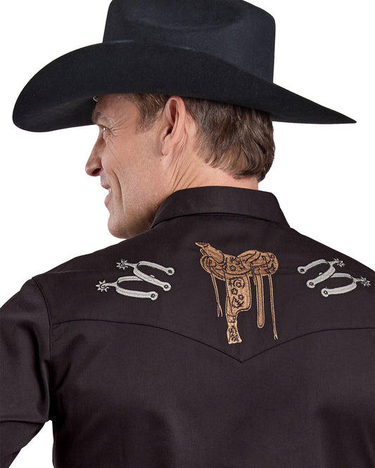 Mens Long Sleeve Snap Jet Black Poly Rayon Western Shirt - 03-001-0040-6001 Bl