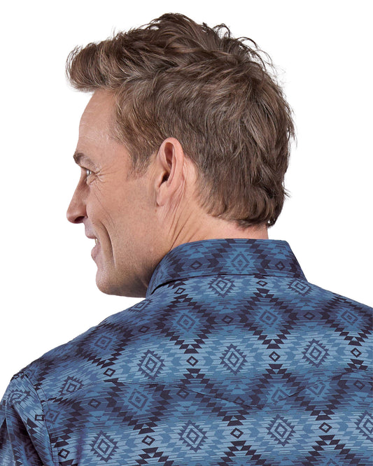 Mens Long Sleeve Snap Aztec Serape Print Western Shirt - 03-001-0067-0740 Bu