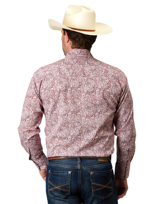 Mens Long Sleeve Snap Stretch Poplin Red Paisley Western Shirt - 03-001-0225-2109 Re