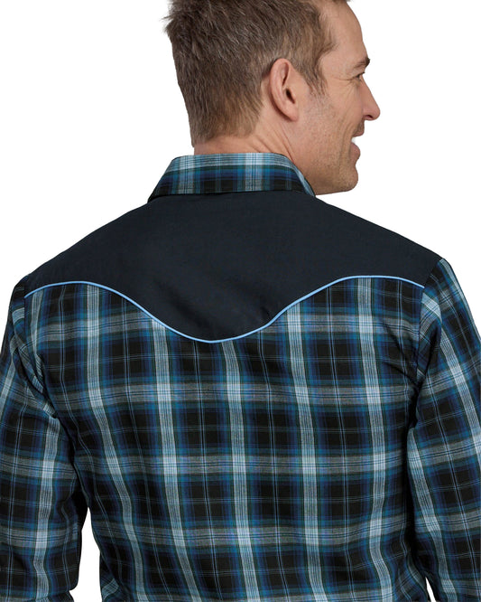 Mens Dungaree Plaid Long Sleeve Snap Western Shirt - 03-001-0278-7035 Bu