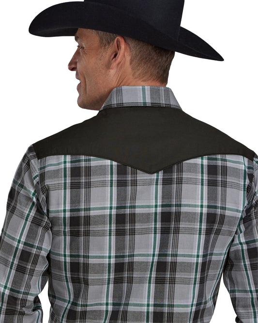 Mens Gray Black And White Plaid Long Sleeve Snap Western Shirt - 01-001-0087-6085 Gy