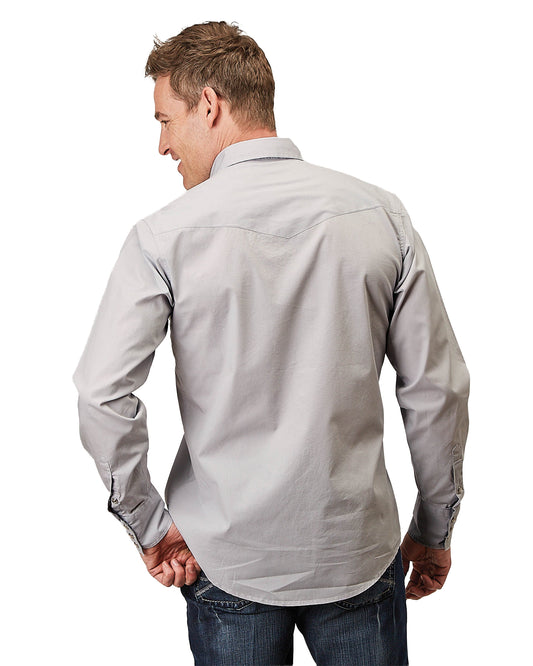 Mens Long Sleeve Snap Solid Poplin Grey Western Shirt - 03-001-0060-0324 Gy
