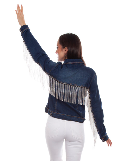 Women's Rhinestone Fringe Denim Jacket