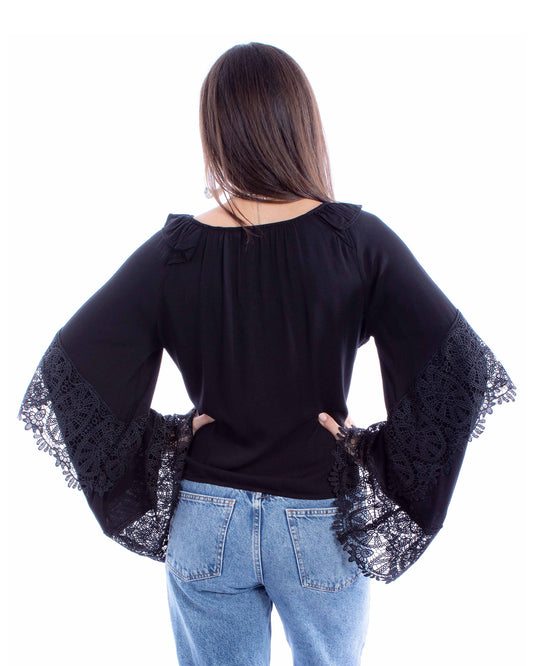 Women's Crochet Bell Sleeve Western Blouse