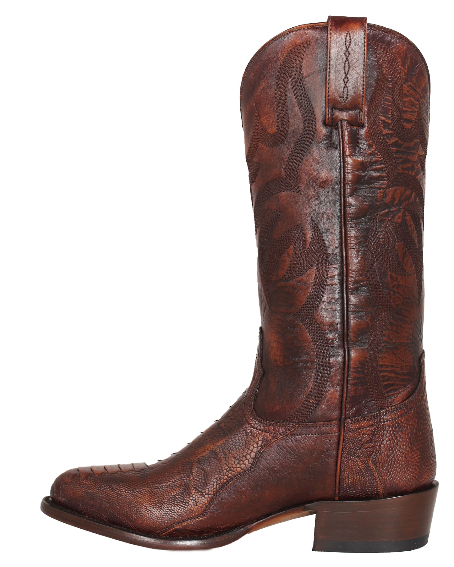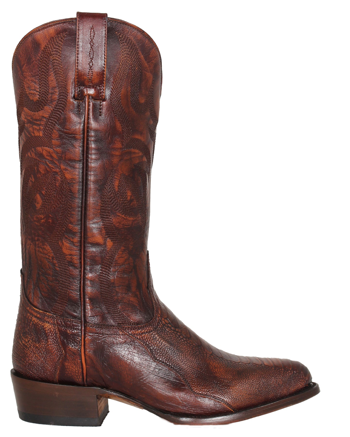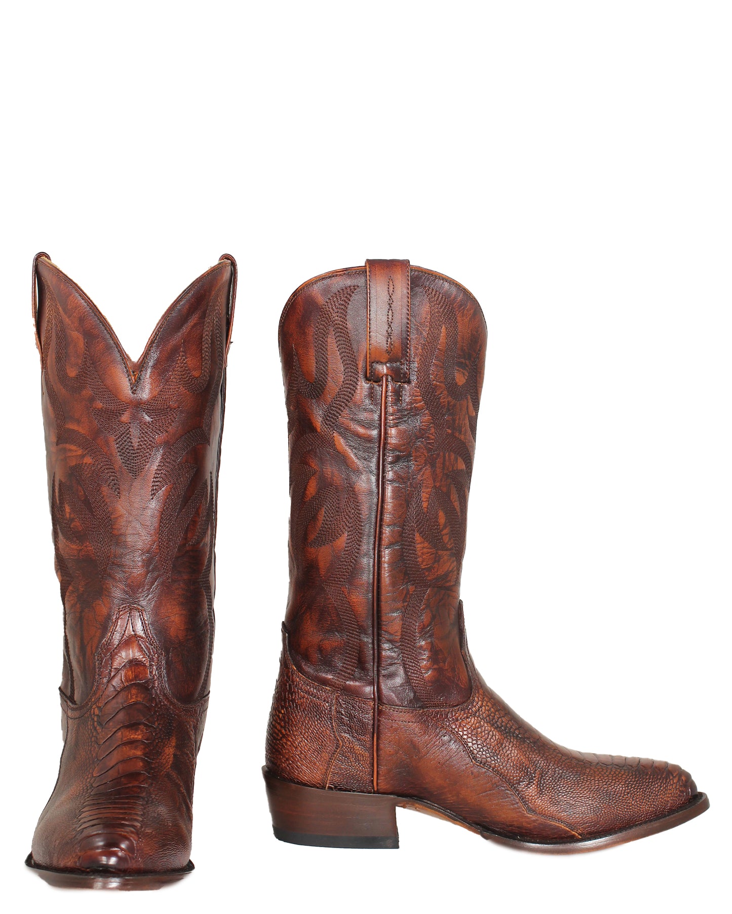 Inspired by the halcyon days and the mythic bird known for calming the winter seas, this exquisite 13" boot is crafted from genuine ostrich leg. With its R medium round toe and a 1 3/8" cowboy heel, it mirrors the peace and tranquility that Halcyon represents. The blend of premium leather and unique texture offers a serene yet striking aesthetic, a tribute to nature's moments of calm beauty.