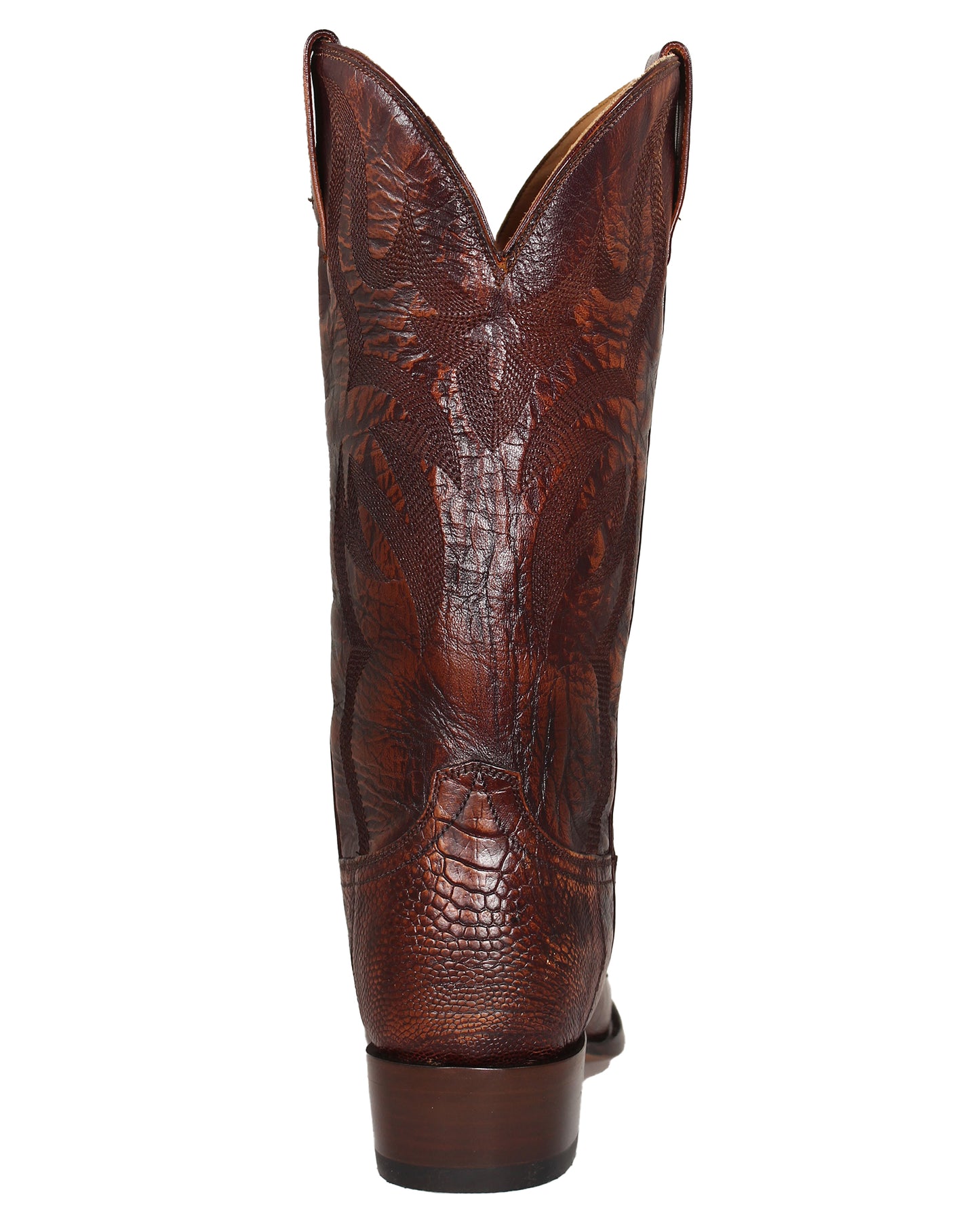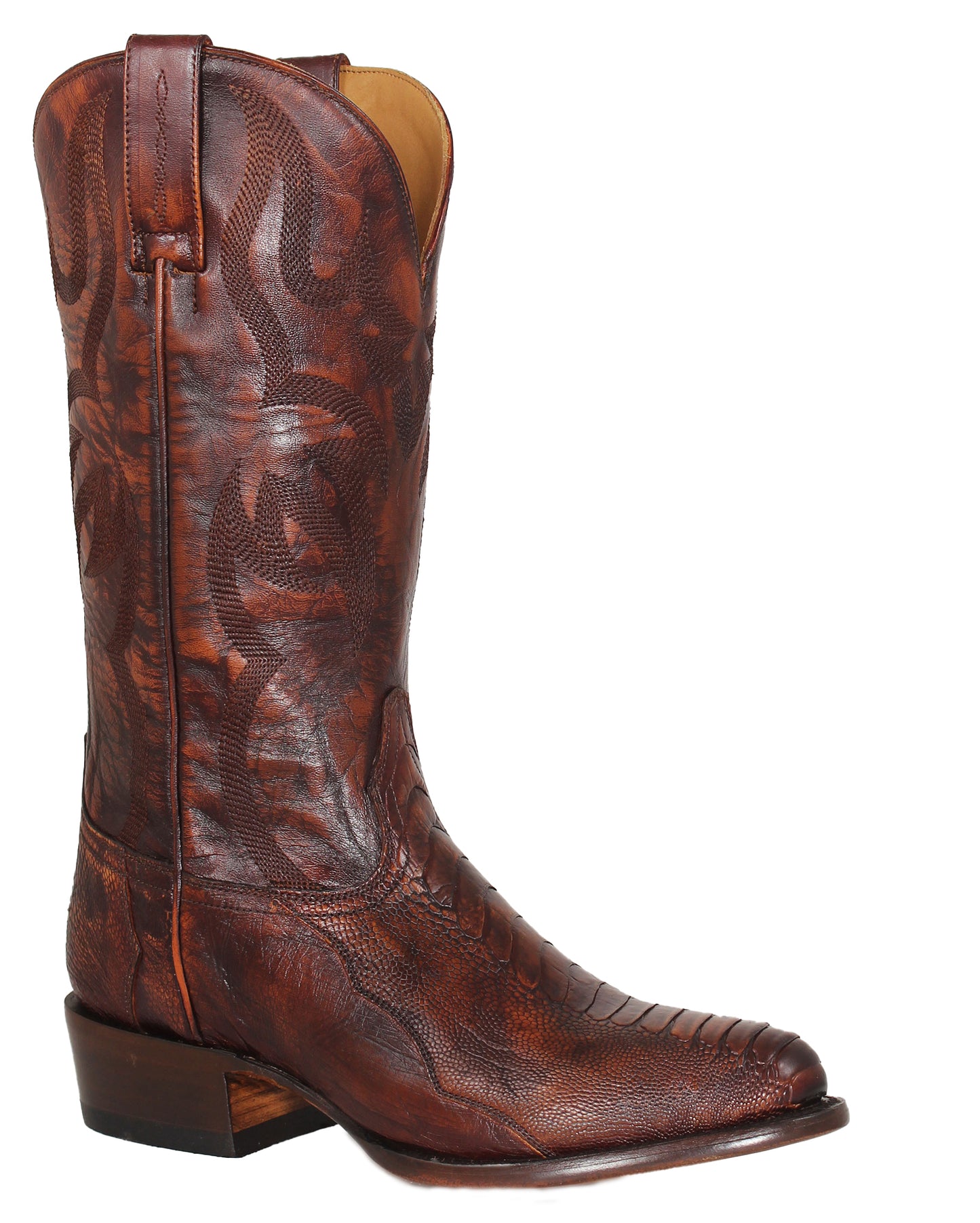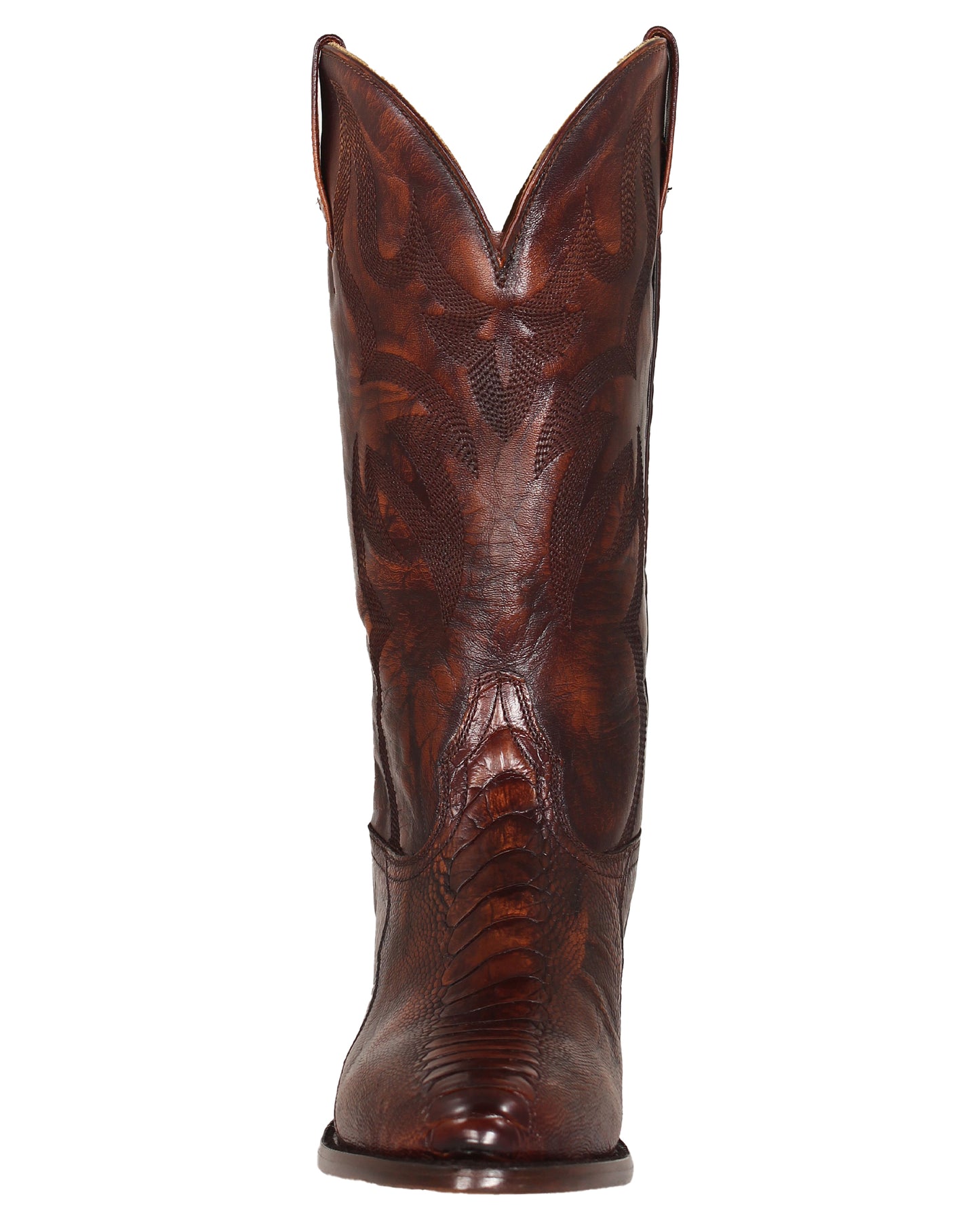 Inspired by the halcyon days and the mythic bird known for calming the winter seas, this exquisite 13" boot is crafted from genuine ostrich leg. With its R medium round toe and a 1 3/8" cowboy heel, it mirrors the peace and tranquility that Halcyon represents. The blend of premium leather and unique texture offers a serene yet striking aesthetic, a tribute to nature's moments of calm beauty.