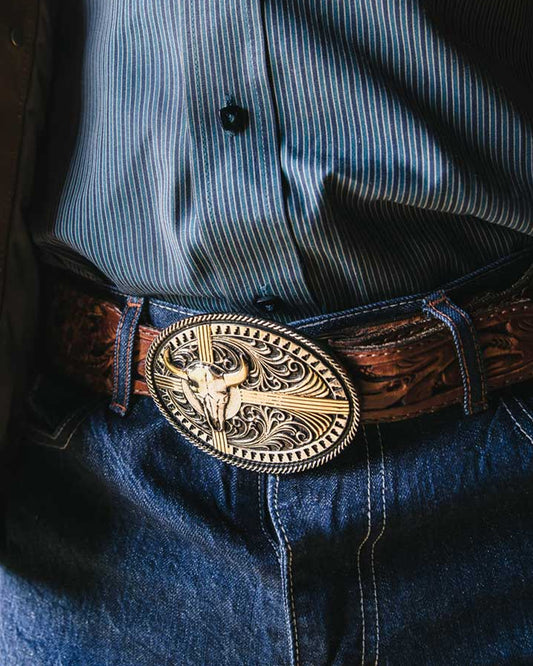 Attitude Oval Longhorn Belt Buckle
