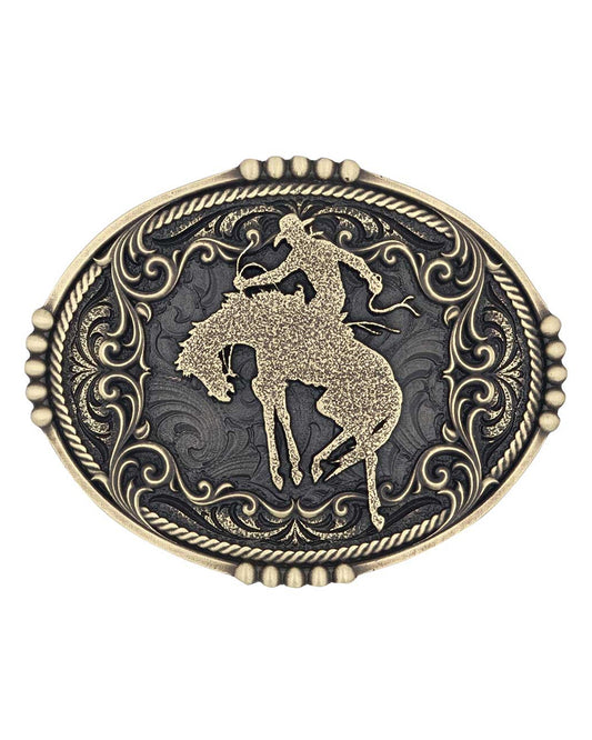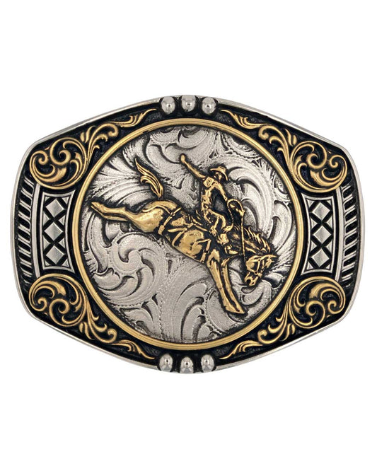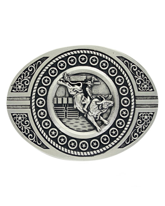 A-Blaze Filigree Framed Bull Rider Attitude Belt Buckle