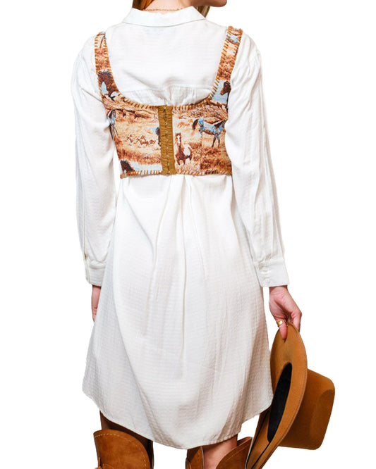 Women's Horse Jacquard Lace-Up Corset Top - 33158T-Taupe-Multi
