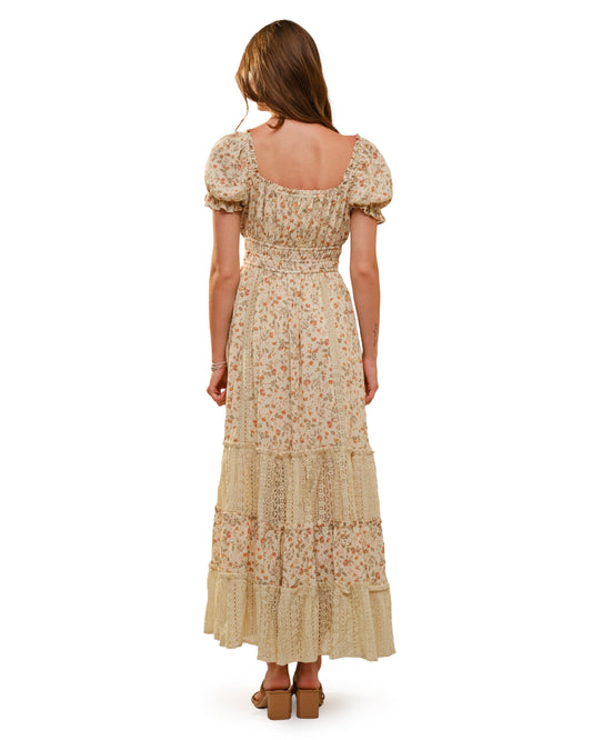 Women's Floral Lace Smocked Puff Sleeve Dress