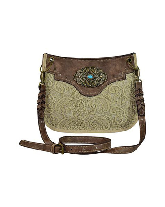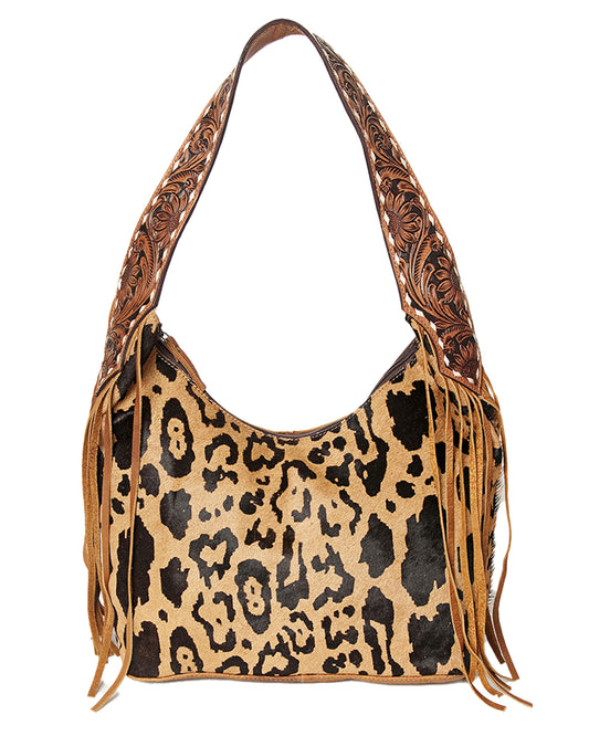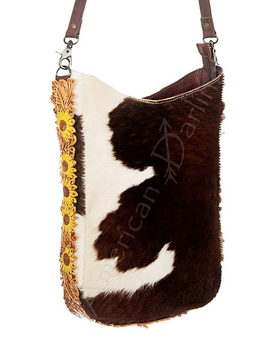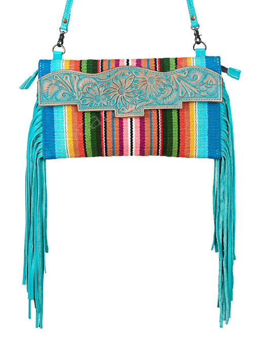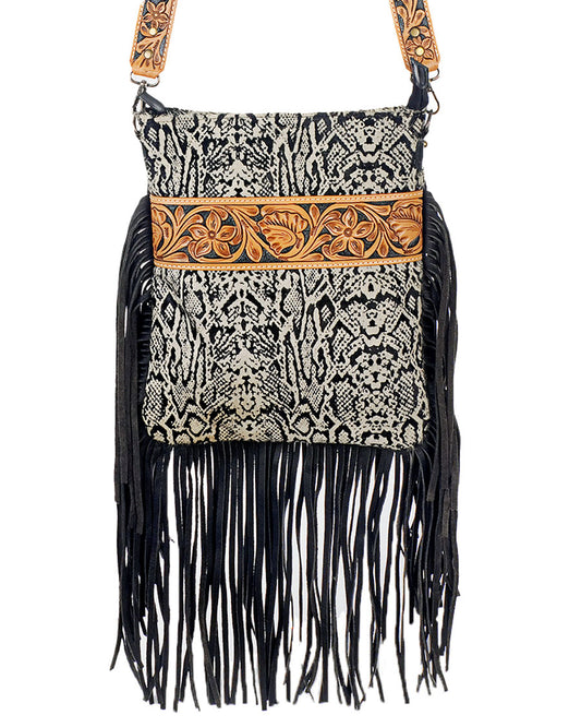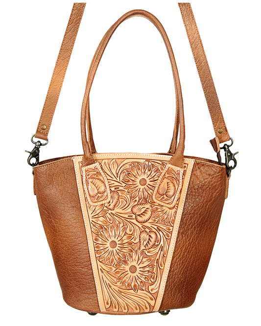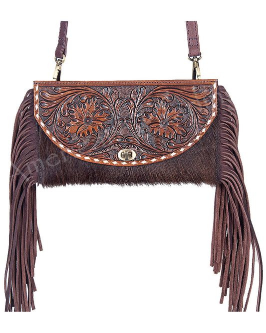 Women's Cowhide Tooled Top with Crossbody Strap Bag