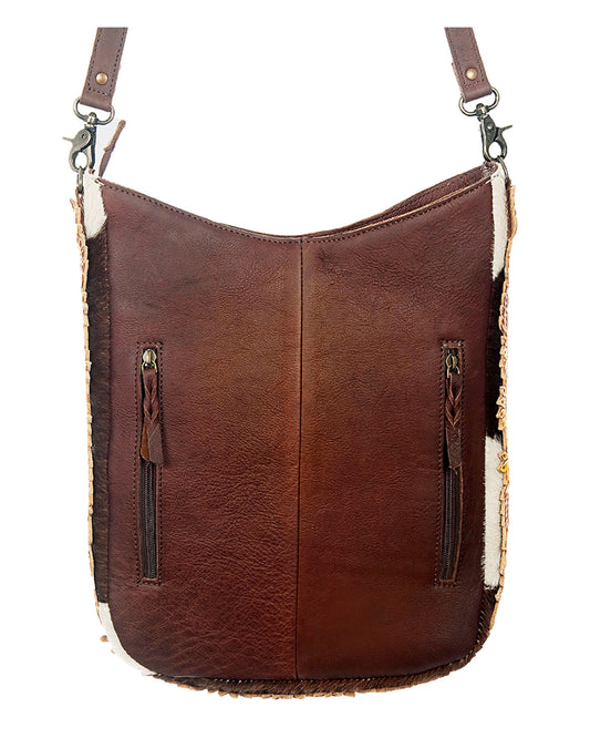 Women's Raw Edge Cowhide with Braided Strap Crossbody Purse