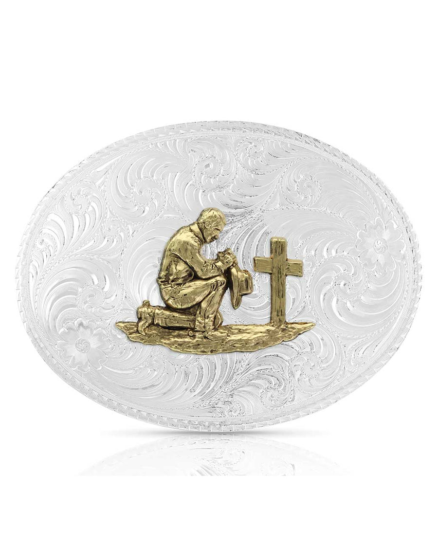 American Beauty Filigree Christian Cowboy Belt Buckle