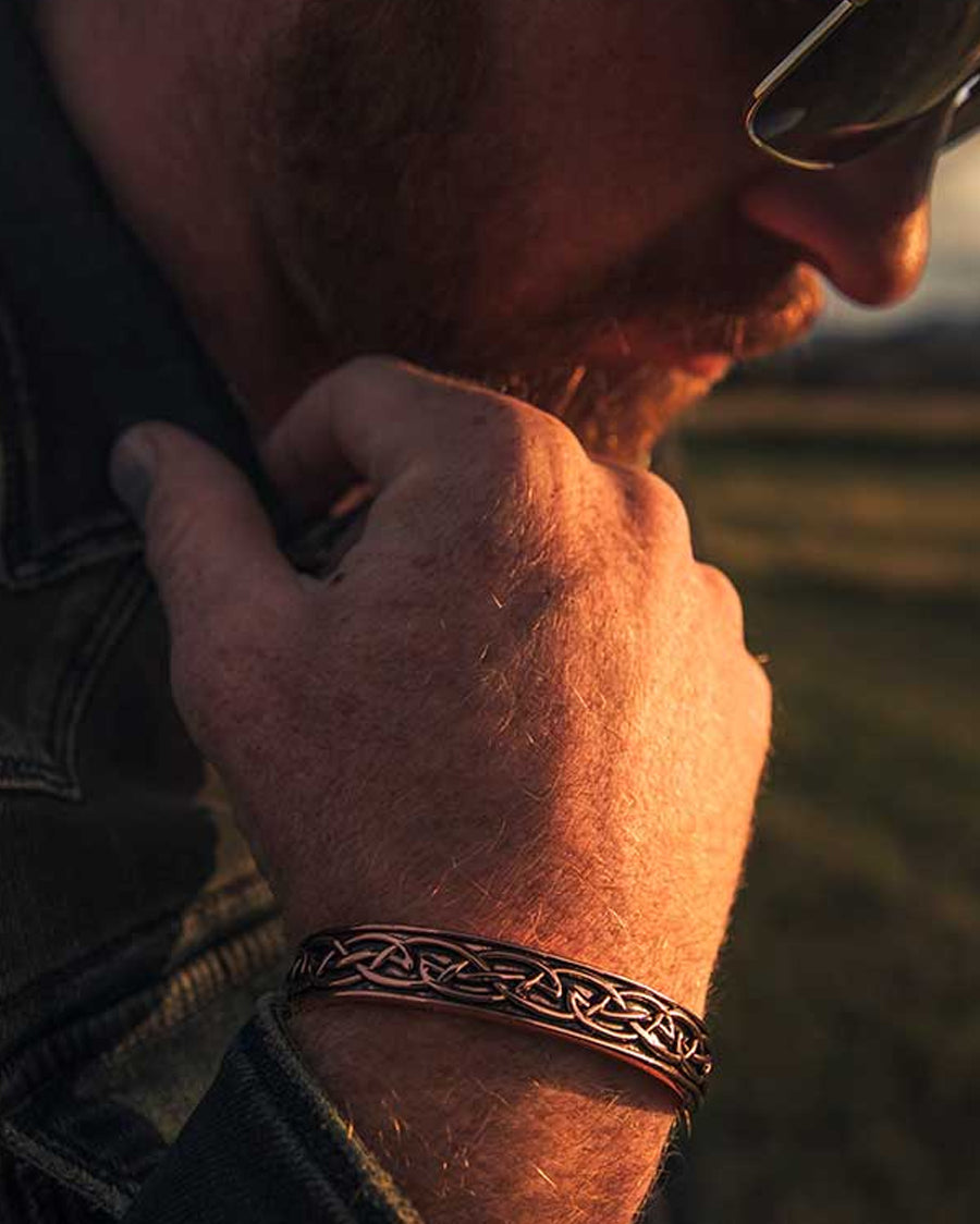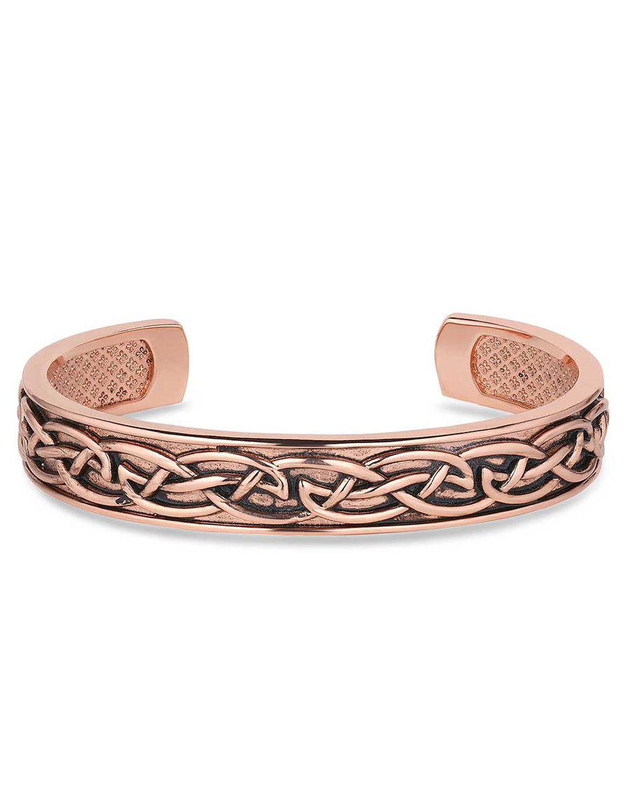 The Cathedral Rock Copper Cuff Bracelet reminds us of the red rocks of the West. This copper bracelet features a pattern through the center of smooth copper lines that intertwine with each other. The center pattern is framed on the top and bottom with a smooth line creating a cohesive design. The light antiquing gives the cuff makes the center pattern stand out and finishes the piece. One size fits most.