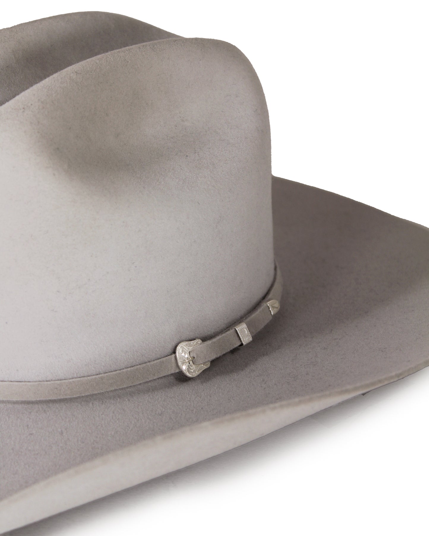 - Self-Banded Hat Band Accented with a 3 Piece Silver Buckle Set