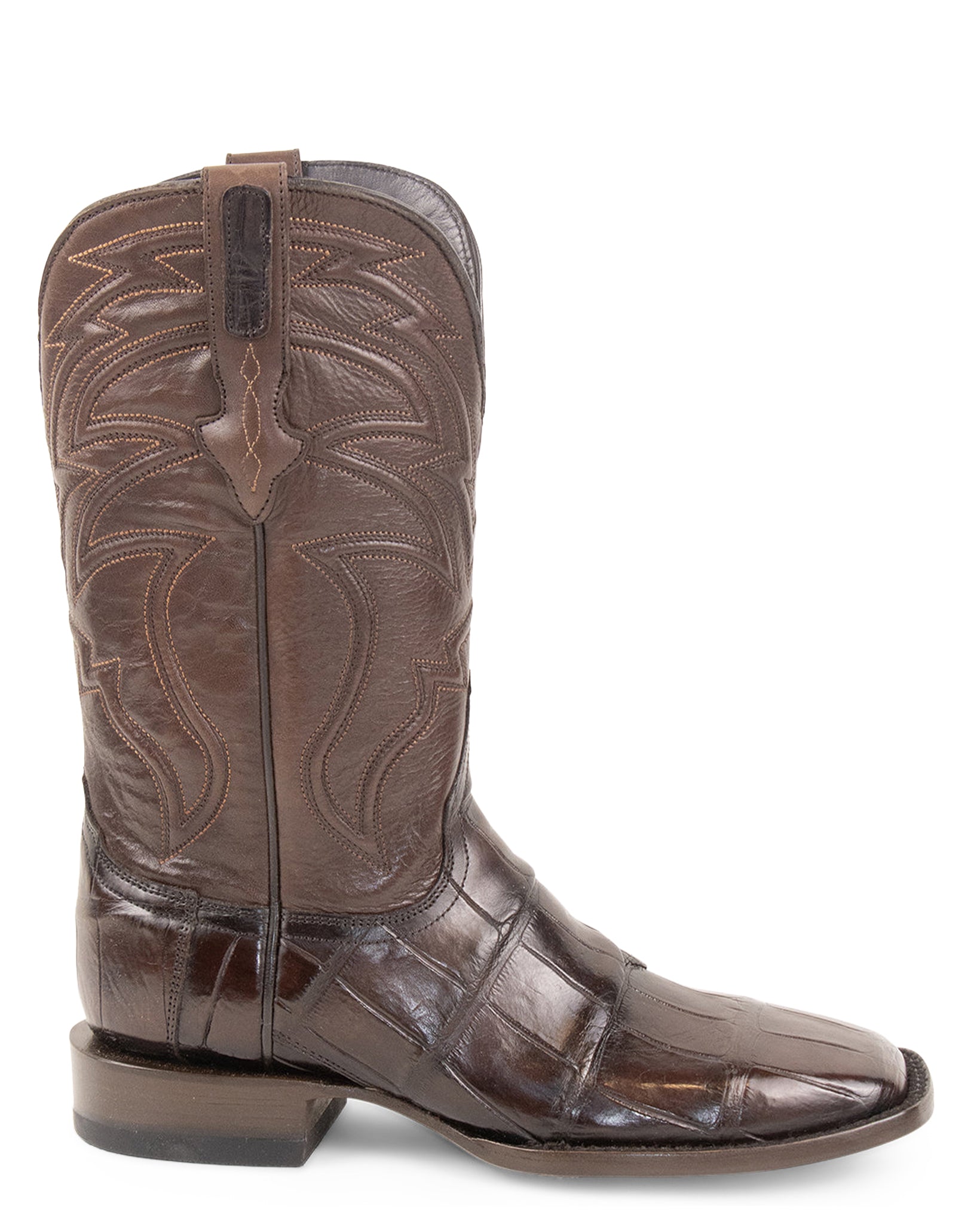 Stylish, genuine alligator Western boots designed for the man who demands quality and luxury. Made from premium materials, these boots feature a giant alligator vamp and pull straps for a touch of exotic flair. Enjoy the premium functionality and elegance of these boots, perfect for any occasion.