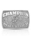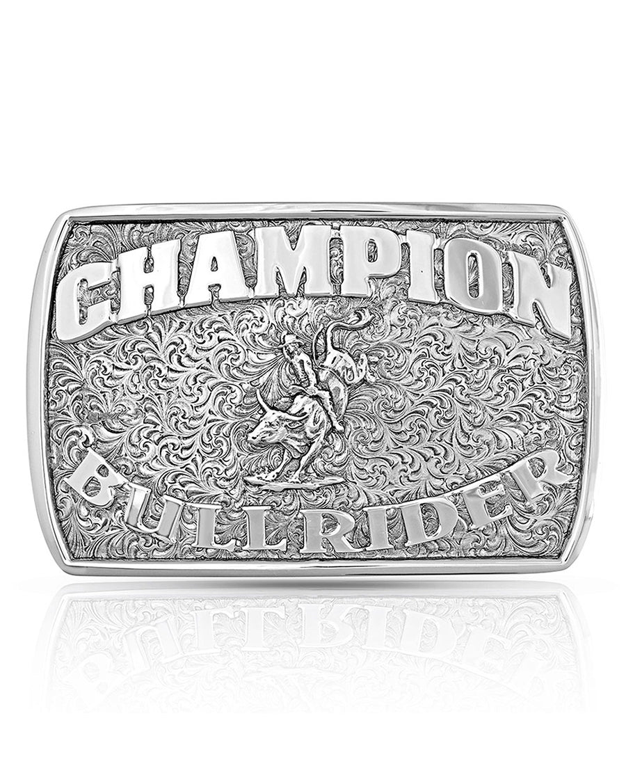 - Bull rider in the center and the words "Champion Bull Rider."