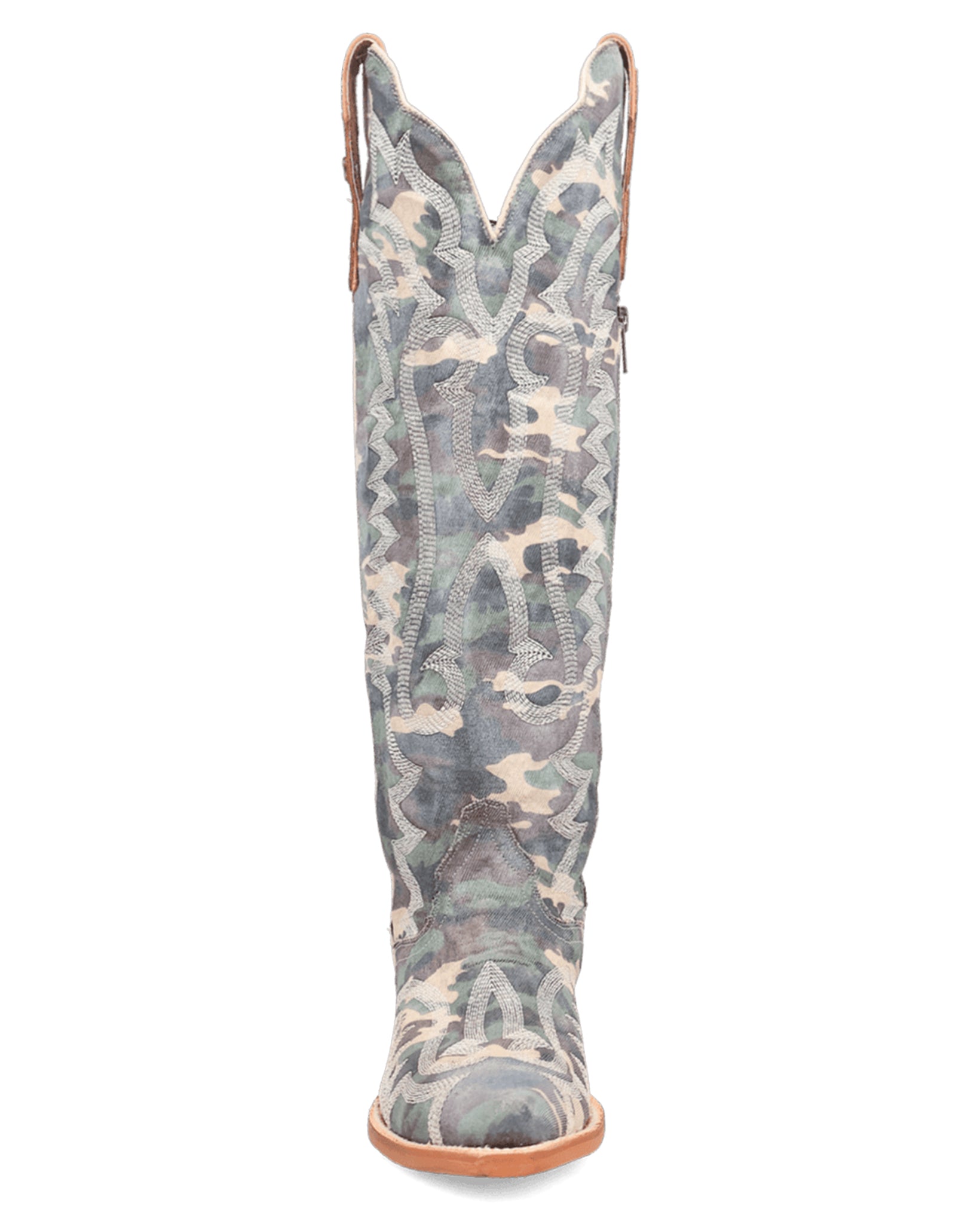 Introducing the Camo Darlin', the newest standout in our Denim Darlin' collection, blending rugged edge with feminine flair. Featuring an 18-inch shaft, 1" cowboy heel, and a unique washed camo pattern, it’s built to turn heads wherever the trail takes you. Bold, playful, and unmistakably Western—Camo Darlin is made for those who lead with style.