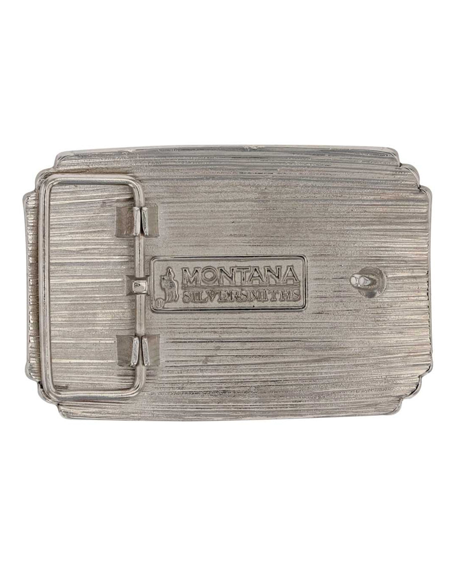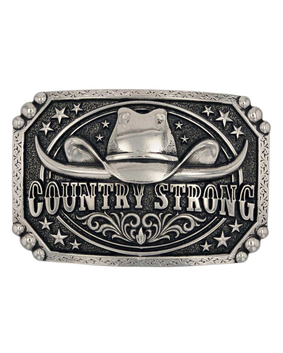 If Country Strong is your refrain you will love this handsome belt buckle. Its silver tone design features a cowboy hat paired with horns for a bold look. Filigree, stars, and beading fill in the spaces to create a stunning and unique design. Standard 1.5 inch swivel.