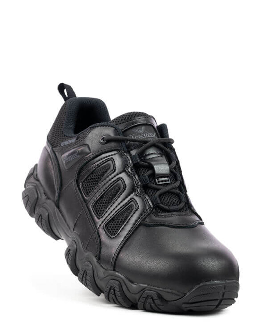 Whether you’re getting the job done in bad weather or on difficult terrain, our Crosstrex series delivers the quality, durability, and comfort you require. These polishable black Oxfords give you the protection you need on those tough jobs – they’re slip resistant, waterproof, blood-borne pathogen penetration compliant, and offer a composite safety toe. Plus, these uniform shoes have non-metallic eyelets, which means that they won’t set off security screening devices. You’ll look great and enjoy trusted comfort and performance, all in a polishable, professional-looking uniform shoe. Our Crosstrex Oxfords are tough, reliable, and get the job done – just like you.