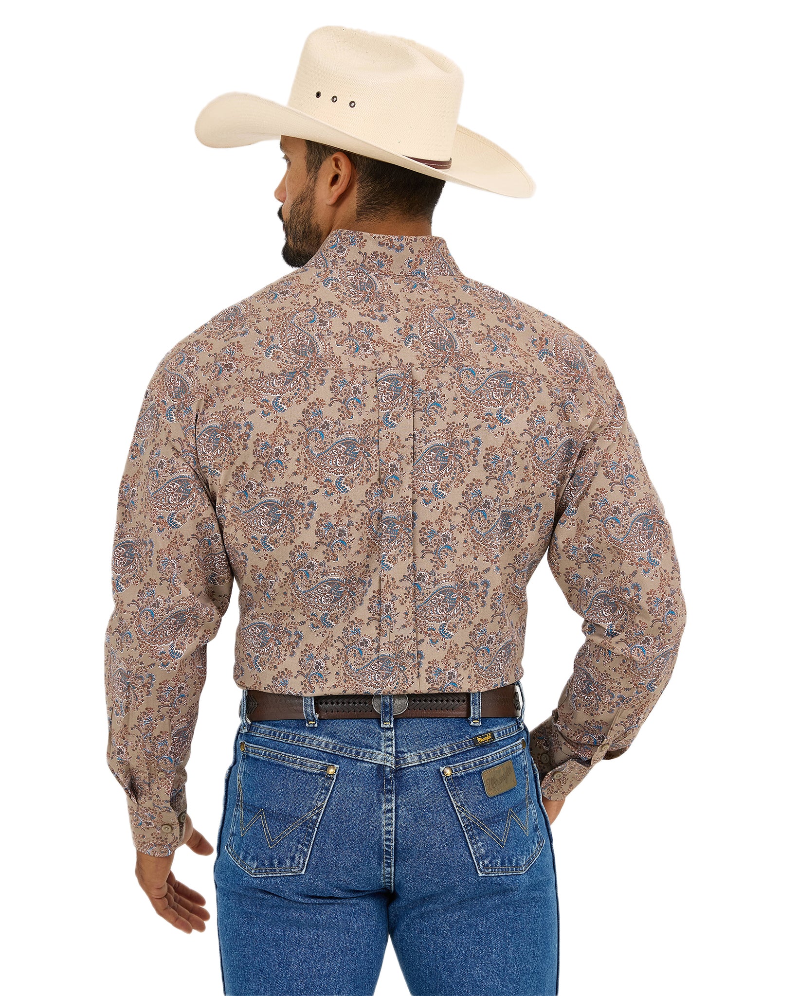 Designed for comfort and style, this shirt features a brown multi paisley print and two button through pockets. The 98% cotton, 2% spandex blend ensures a comfortable fit, while the contrast trim and straight back yoke add unique style. The two button adjustable cuffs make it easy to customize the fit to your liking.