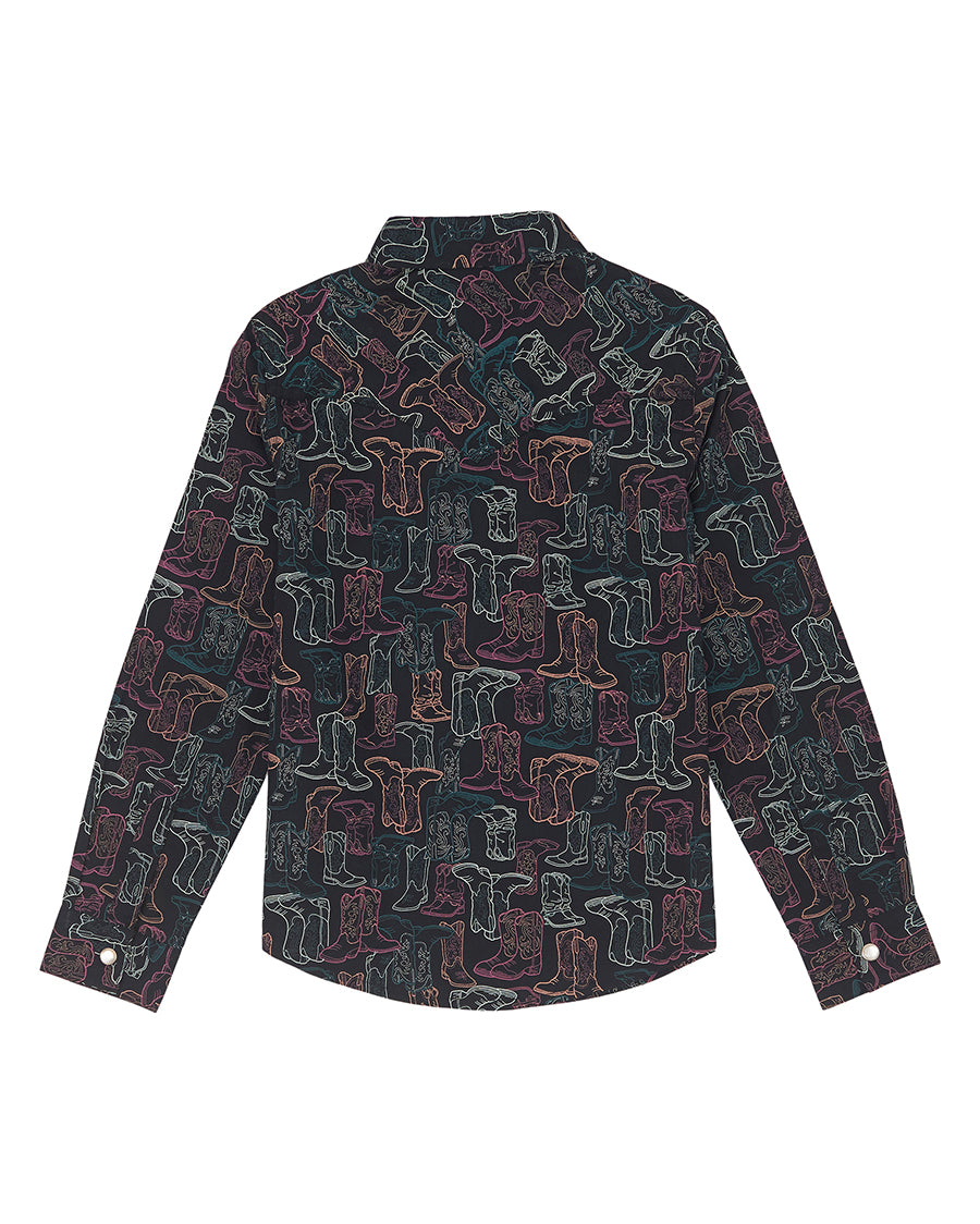 A fan favorite, our iconic Western snap shirts are a style staple in cowgirl closets across the country. This mini-me version is a style every aspiring cowgirl should have in her arsenal. Designed with the same authentic look of our originals, this girls' Westen snap shirt features Western yokes, pearl snap buttons, and two flap snap chest pockets with 'W' embroidery. Its bold color scheme put fashion first while the easy-to-layer silhouette makes for versatile, year-round styling.