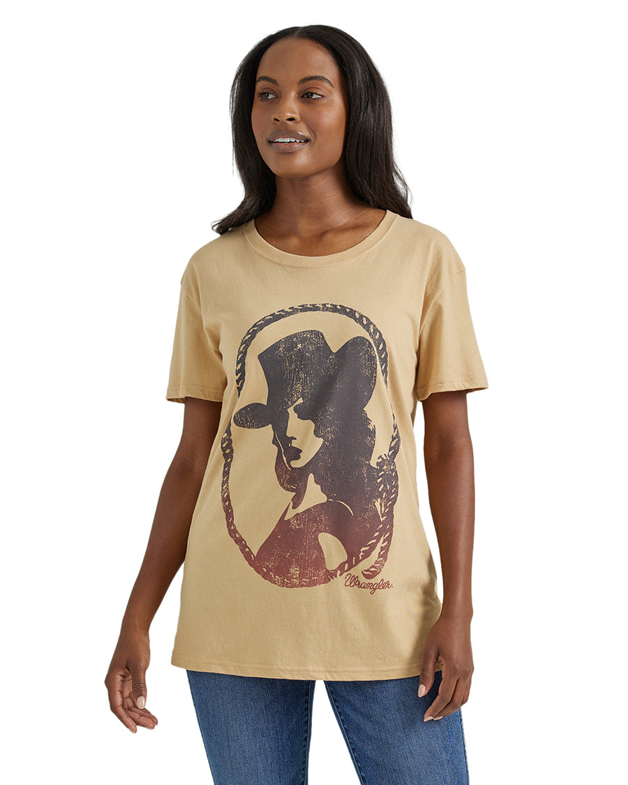 Long Live Cowboys®. Our Women's Wrangler Retro® Western Graphic Boyfriend Tee comes with a retro-inspired graphic that celebrates our Western heritage and those cowboys we love. It's crafted from a buttery soft cotton blend for comfort and cut with a boyfriend fit for a slightly oversized look that feels lived in and well-loved, no borrowing from the boys required.
