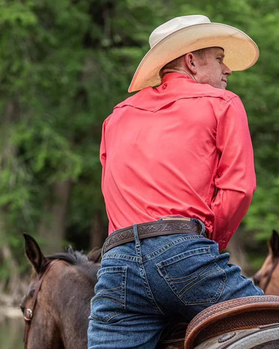 Traditional western pearl snap style with a modern lightweight, ripstop fabric, and a vented yoke. You won't find a more comfortable fit!