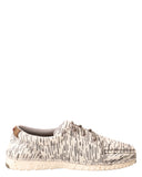 - Bamboo laces. Also features elastic gore panels on the tongue that allow the shoe to be worn without laces.