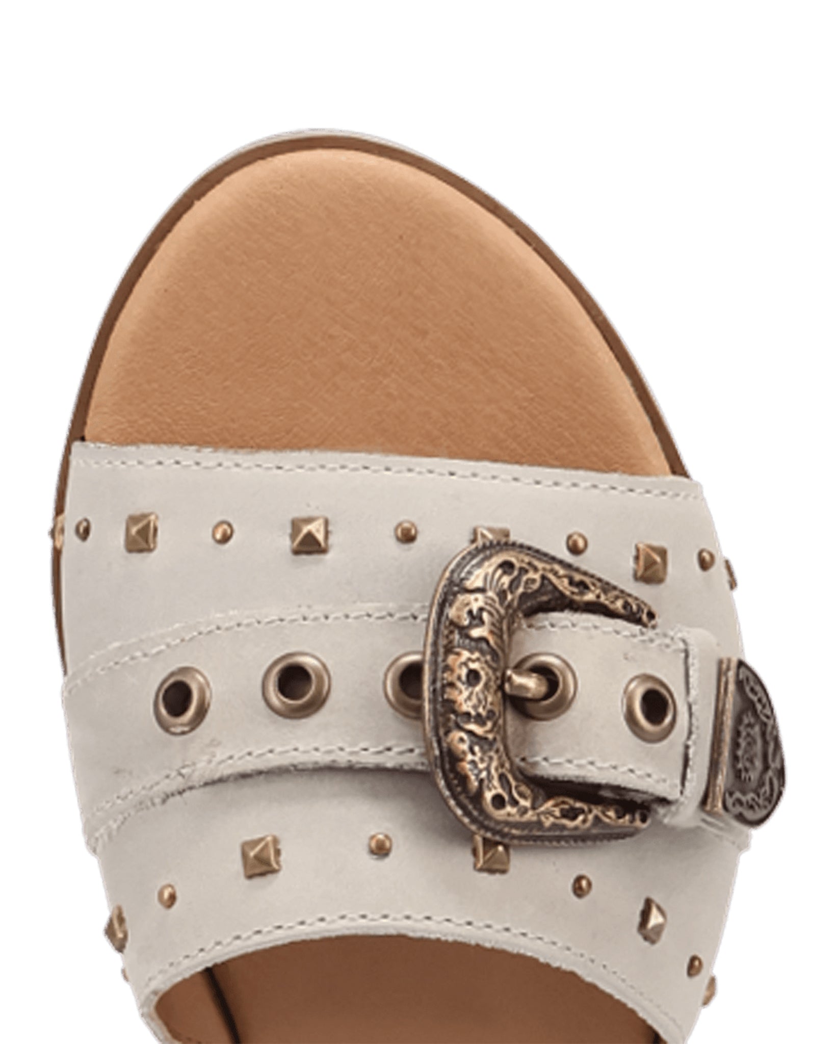 Bold and beautiful. These sandals feature a striking buckle and studded accents, adding a touch of rebellious charm to a classic silhouette. Lariat is the perfect choice for those who embrace individuality and a touch of effortless cool