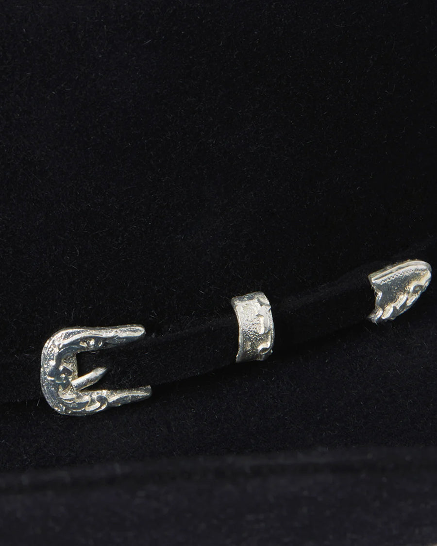 The Lariat combines legendary Stetson quality and classic western style in one timeless package. It’s crafted from our proprietary 5X fur felt, which is prized for its durability, and, as with all hats that come out of our factory in Texas, each Lariat is touched by more than 100 sets of hands during production, resulting in a hat that is designed and built to stand the test of time. This edition features a 4542 profile, which translates to 4 1/4” cattleman crown and 4 1/4” brim, and it’s finished with a three-piece, silver-tone buckle set and matching self-felt hatband. A handsewn genuine leather sweatband and full satin liner provide a time-tested fit and premium comfort.