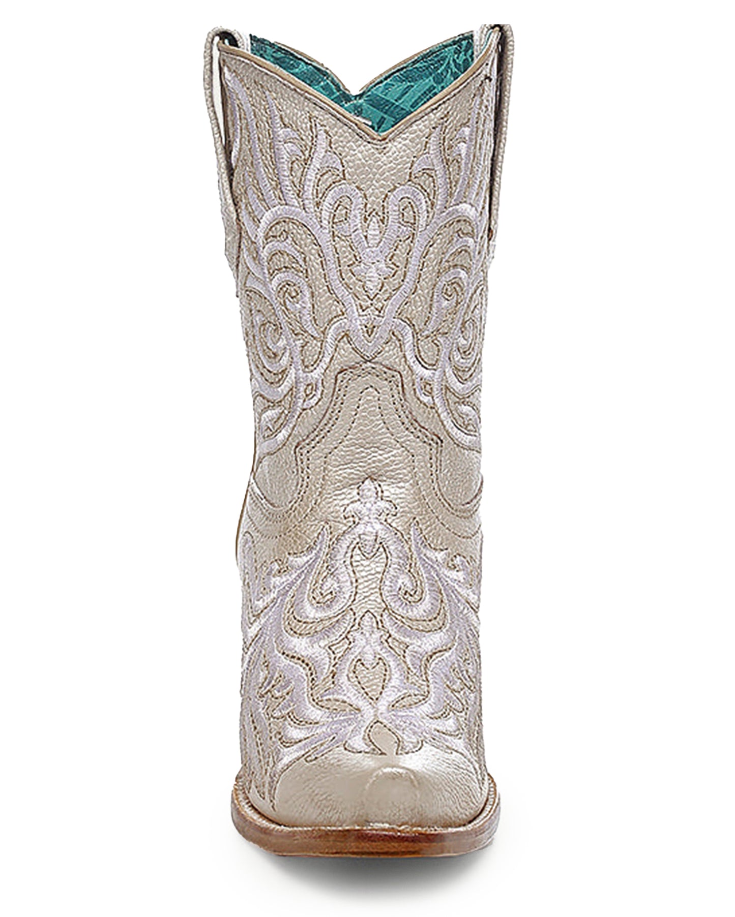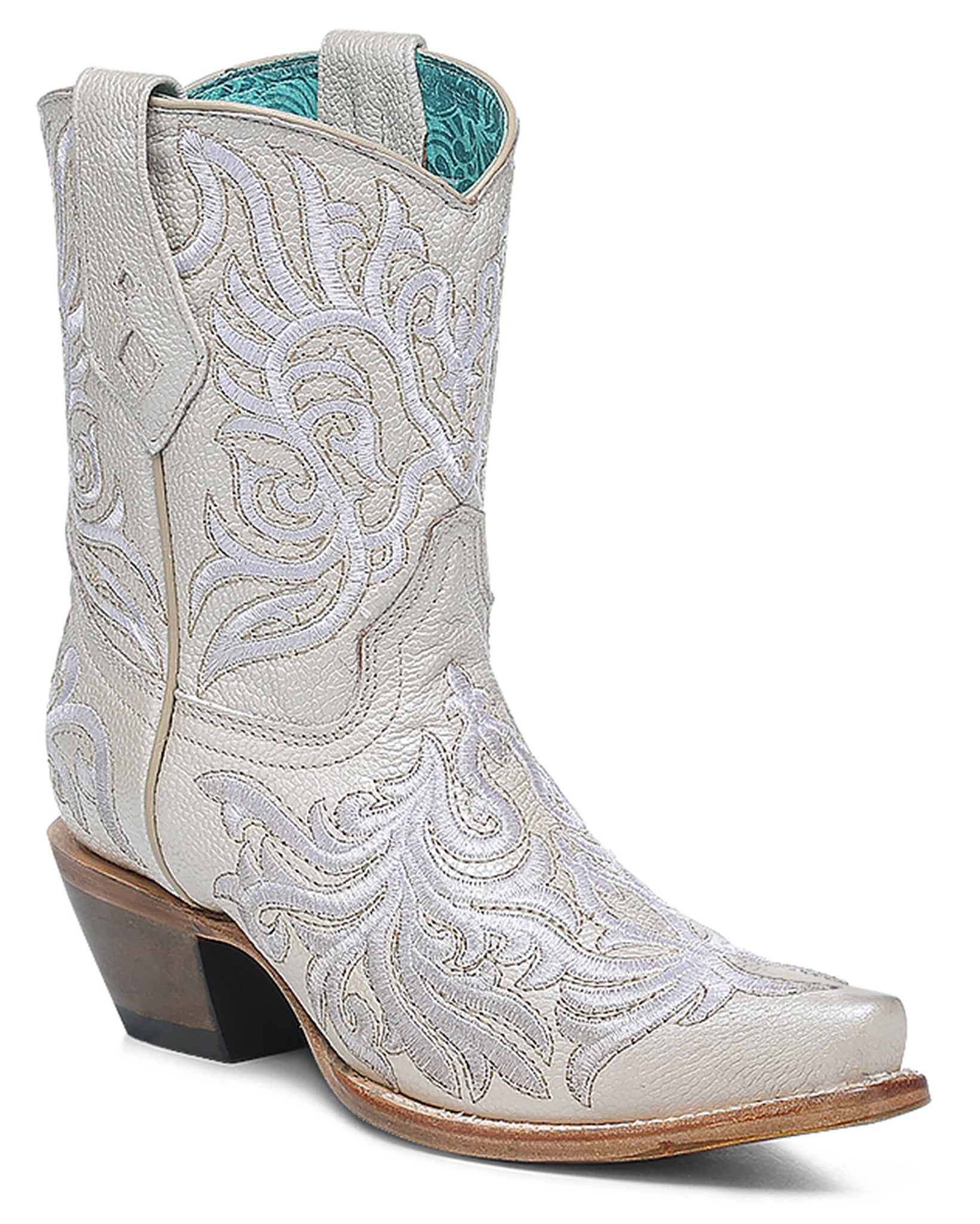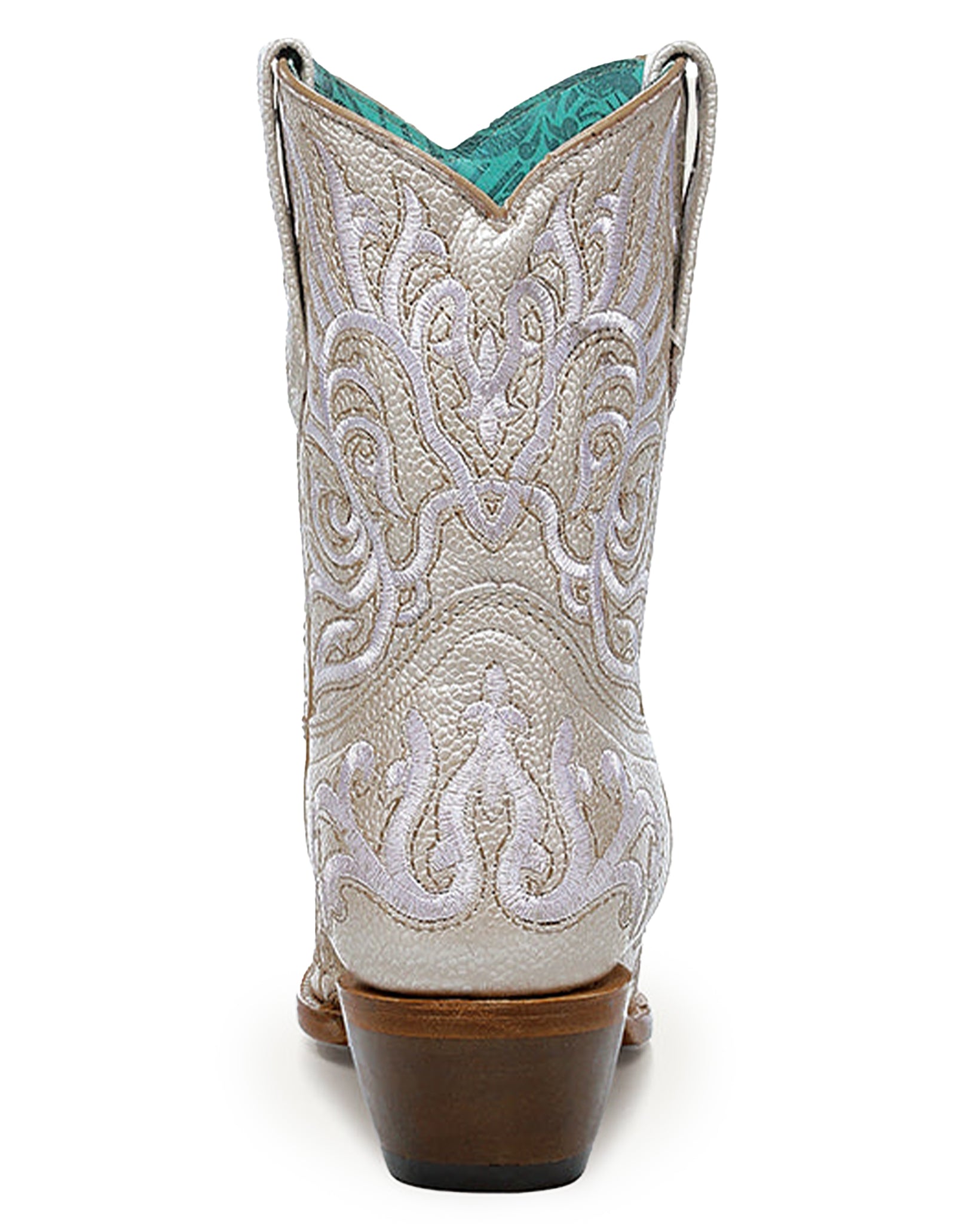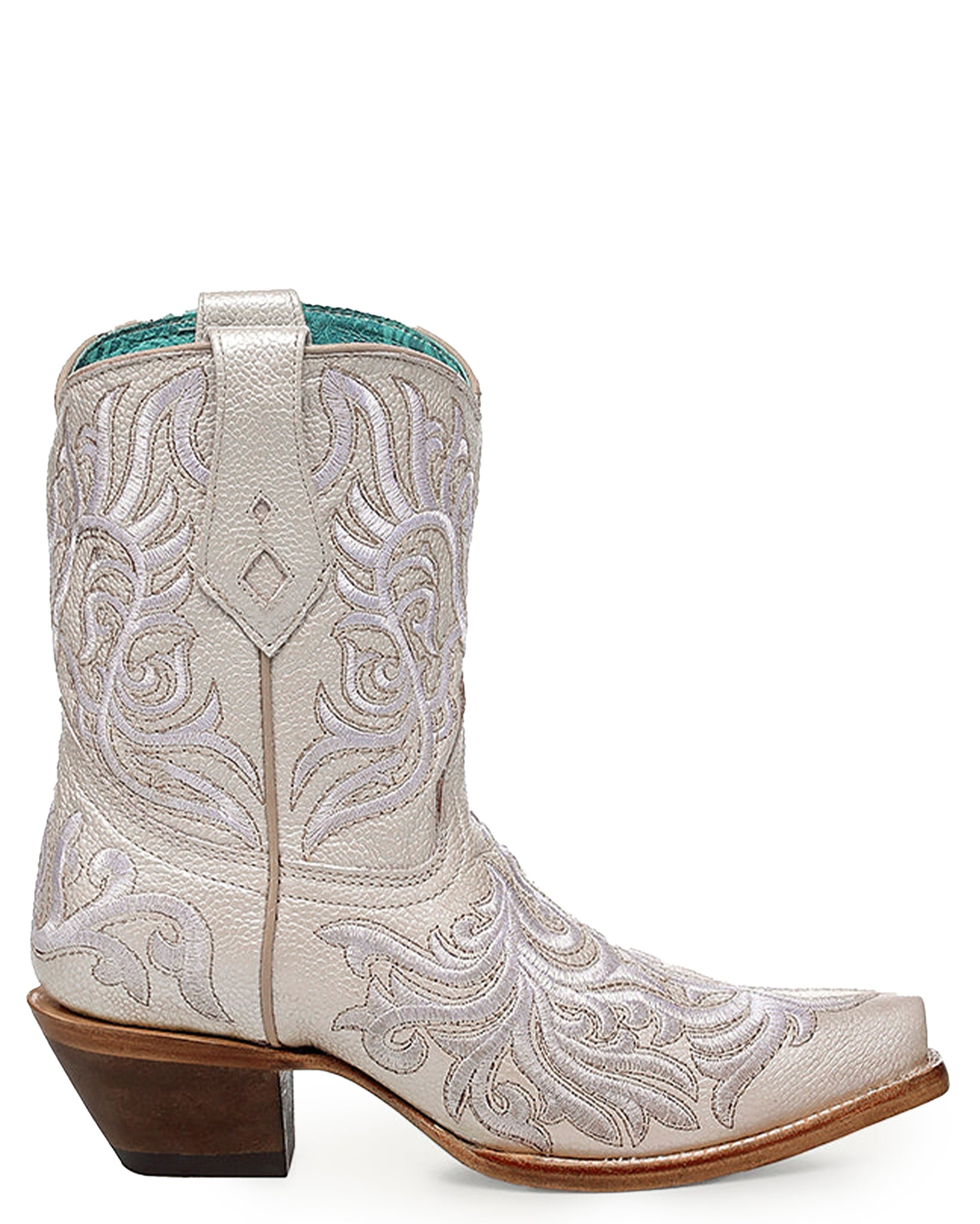 A great choice for any occasion the 8-inch shaft decorated beautifully with embroidery makes this boot easy to pair with denim, a sun dress, or a wedding dress. This is a style you can wear all day without worrying about getting tired. It features; sturdy pull-on straps and an elegant snip toe. The smooth inside leather lining, cushioned leather insole, leather outer sole with a rubber heel cap, and 2-inch stacked heel, scream comfort.
