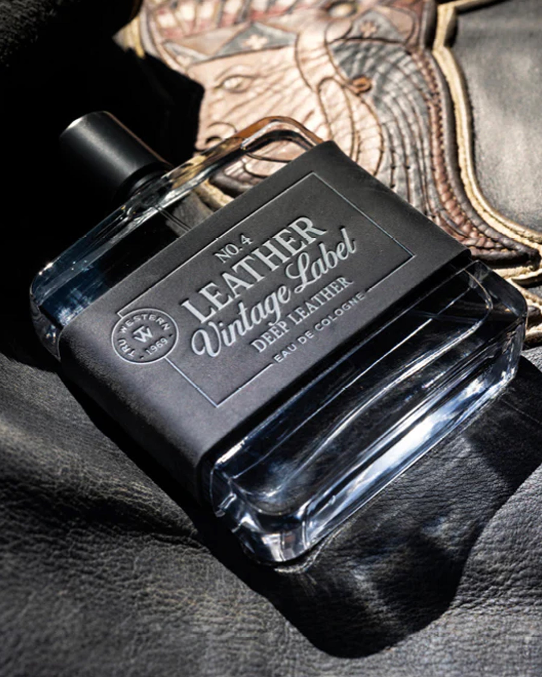 Leather Vintage Label Deep Leather captures the spirit of the West, where rugged landscapes meet starlit skies. Inspired by soulful conversations around the campfire, this warm cologne combines unique notes of smoky leather, crystal salt and black amber.