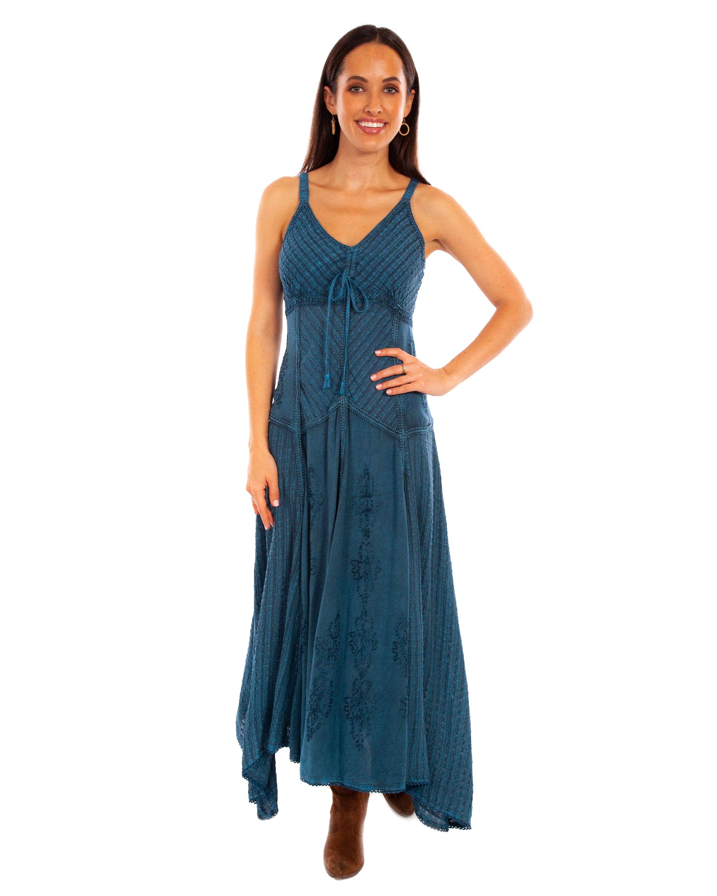 - 100% rayon multi-fabric long spaghetti strap dress.