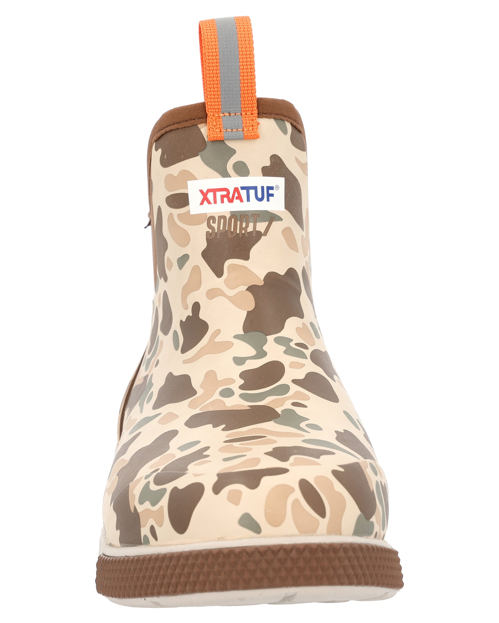 The Ankle Deck Boot Sport brings you everything you would expect from your XTRATUF boots, but in a sportfishing-specific silhouette that is up to 30% lighter than other 6-inch boots in this category. This Sport is built from a new high-performance foam BIOLITE, which is ultra-durable and slip-resistant, all while being a one-piece outsole. This boot delivers the comfort and agility of a sneaker, with long-lasting cushion and high energy return, all while offering the same traction benefits as a full-rubber boot. This style also features a new seasonal Duck Camo Pattern.